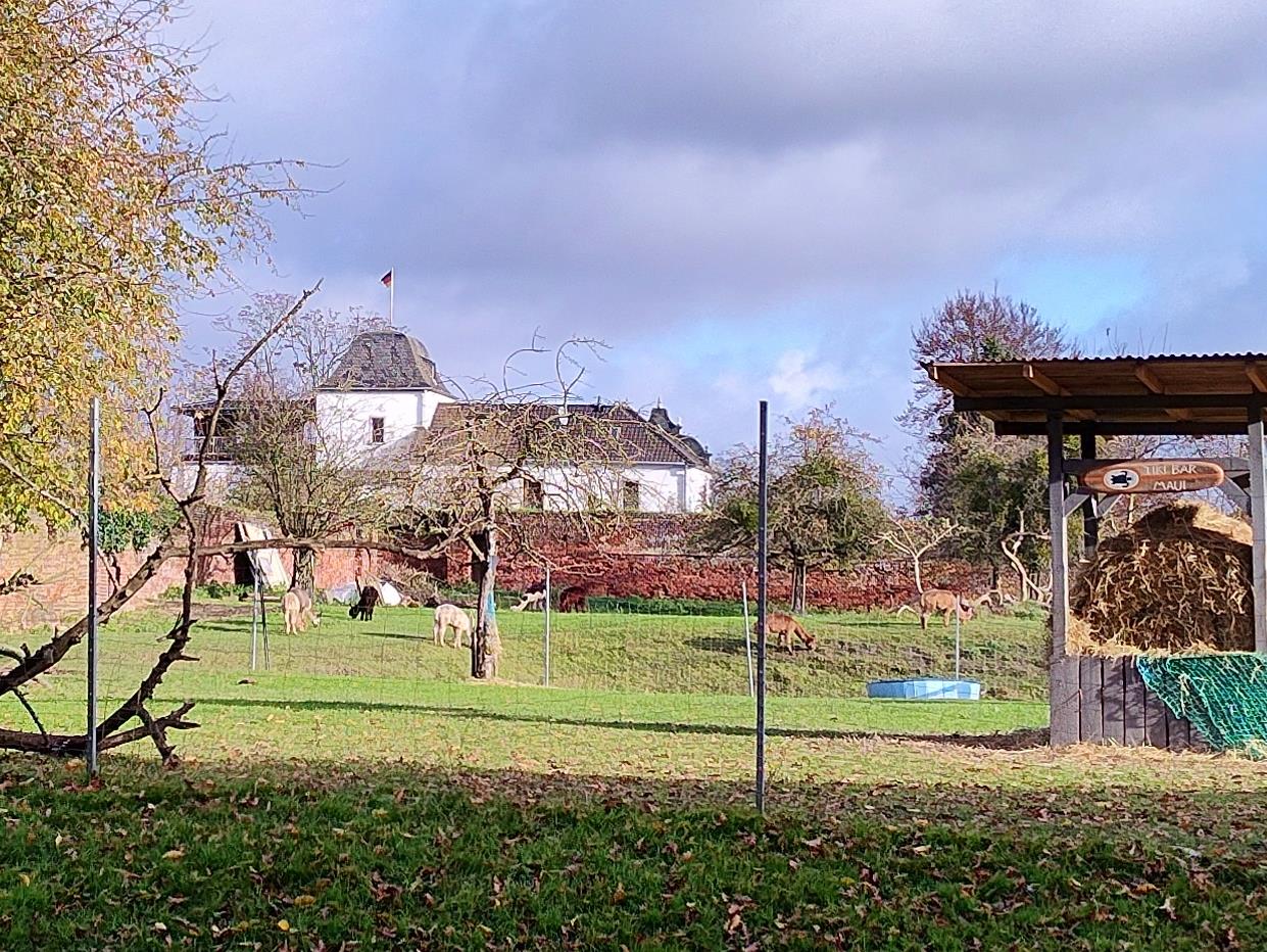 Hinter dem Rheinwall sind einige Alpakas zu Hause