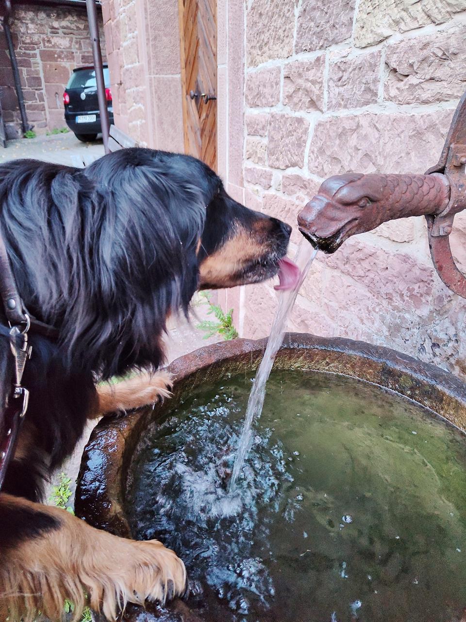 Am Abend laufe ich mit Doxi zum Tiefen See oberhalb des Klosters hinauf, der heute als Bade- und Erholungssee für den Ort dient. Auf dem Weg dorthin passieren wir den Schafhof, etwas oberhalb des Klosters auf dem Plateau des früheren klösterlichen Steinbruchs.