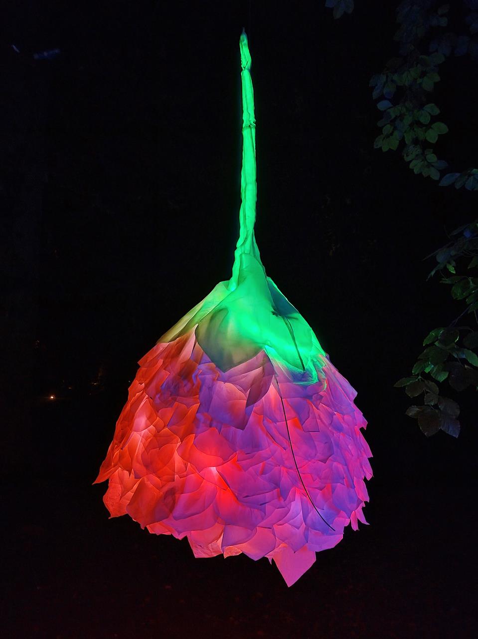 Wie ich gehört habe, gab es am Wochenende lange Schlangen am Einlass. Doch mitten in der Woche ist das Festival nach 21:00 zwar gut besucht, es herrscht jedoch kein Gedränge. Dadurch können wir uns Zeit lassen und alle Installationen in Ruhe erleben.