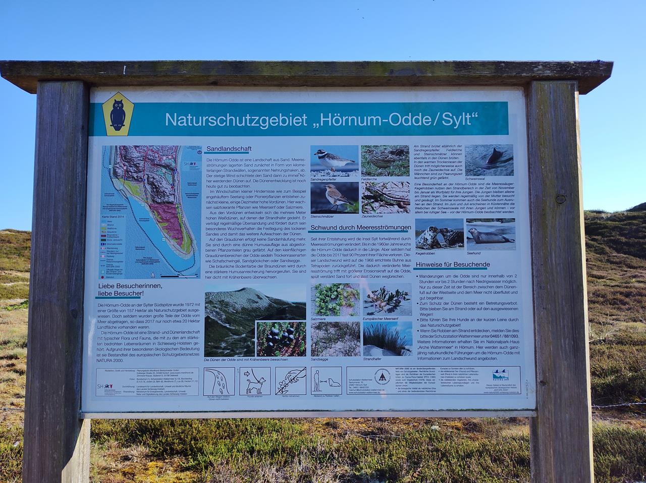 Wir sind in Hörnum angekommen, der „hintersten“ der fünf Inselgemeinden, wenn man von Norden schaut. Vom Schickimicki in der Inselmitte ist hier nur wenig zu spüren. Wir stehen mit dem Wohnmobil auf dem Campingplatz in den Dünen, und es ist total ruhig und entspannt hier. Außer den beständigen Rufen eines Kuckucks ist kaum etwas zu vernehmen.