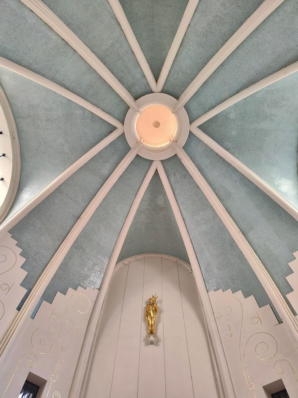 Zwei Monate haben die Arbeiten mit den selbstklebenden, lichtdurchlässigen Vinylfolien in Anspruch genommen. Und heute, wo die Sonne ungetrübt scheint, entfaltet das Werk einmal mehr seine ganze Farbenpracht. Eine moderne Kathedrale des Lichts. Toll, dass ich das erleben durfte.