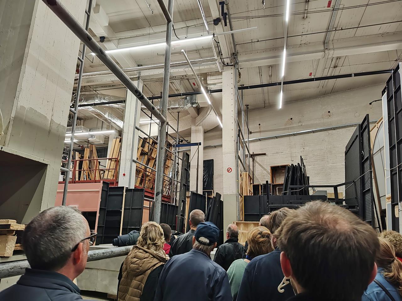 Rund zwei Dutzend Interessierte folgten den Ausführungen eines versierten Theaterpädagogen bei einem 90 Minuten langen Rundgang durch die „Innereien“ des Hauses.