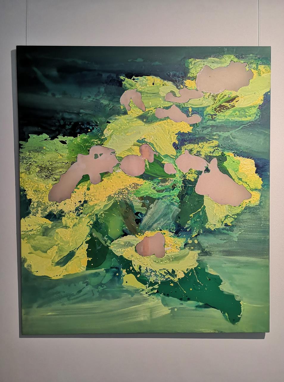 Einige Motive haben bei mir einen starken Eindruck hinterlassen, vielleicht auch aufgrund der besonderen Maltechnik, die die Künstlerin über einen langen Zeitraum entwickelt hat. Ausgewählte Bildbereiche werden dabei mit heißem Wachs bearbeitet, das mit Acrylfarben oder reinen Pigmenten über- und untermalt wird.