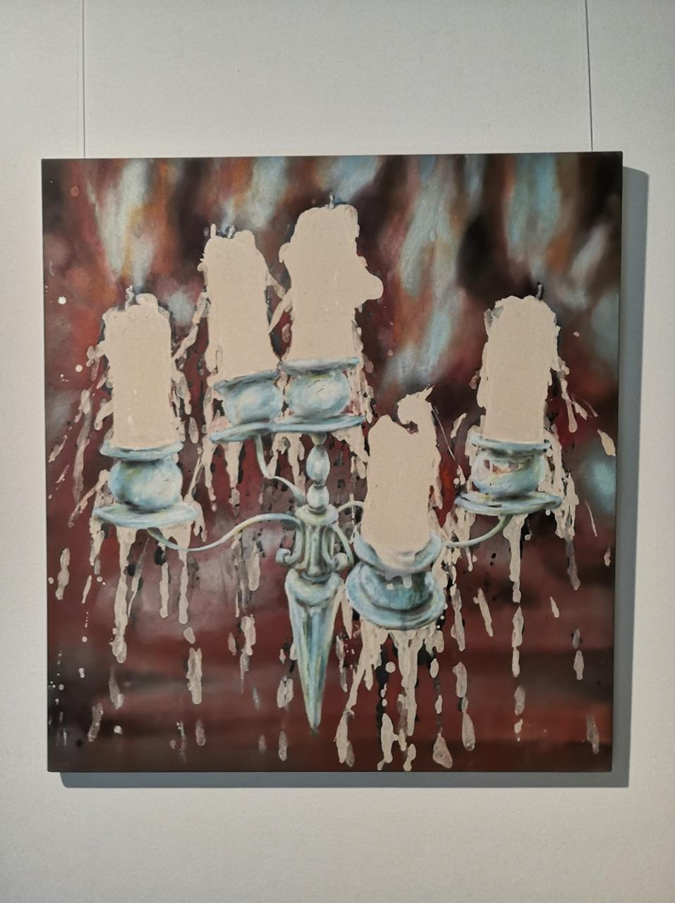 In ihren Naturbildern erzielt Richter dadurch eine starke Wirkung, aber auch bei den Kandelabern, wo sich die Technik in dem Motiv der Kerzen spiegelt. Eine schöne kleine Ausstellung in einem ganz besonderen Ambiente.