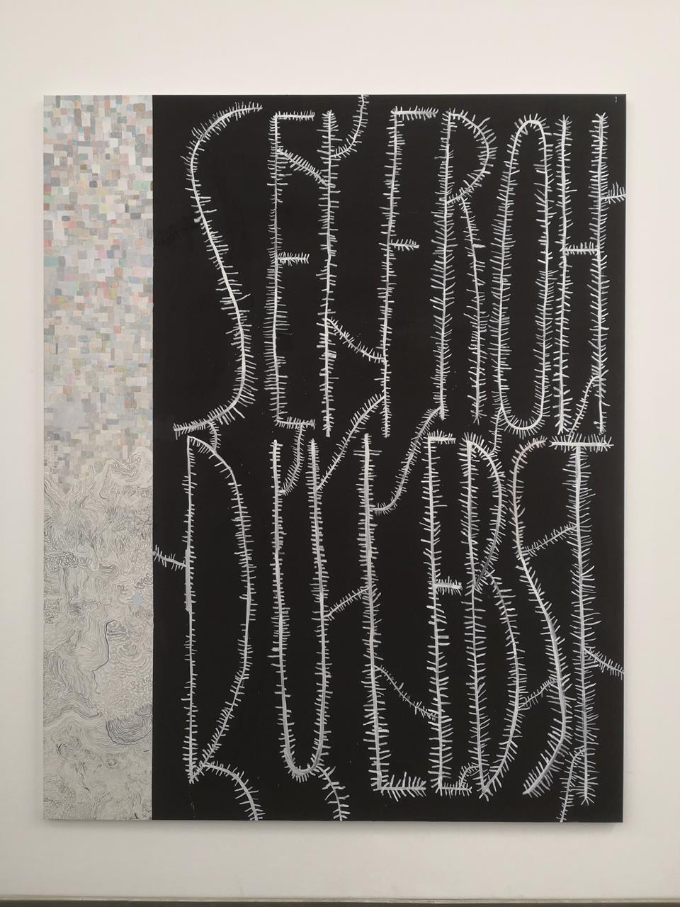 Präsentiert werden auch einige großformatige Werke – und ich meine richtig großformatig – die in den hohen, lichtdurchfluteten Räumen des MKM eindrucksvoll zu Geltung kommen.