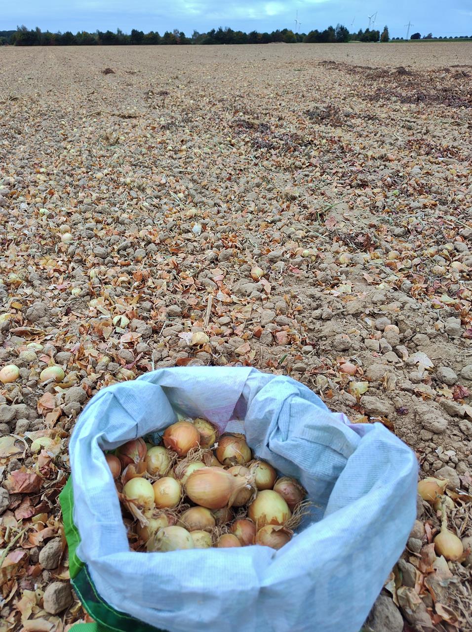 Auf den Feldern rund um unser Dorf werden gerade die Speisezwiebeln geerntet. So manche Bolle bleibt dabei auf den Feldern zurück, nachdem die Bauern ihre Ernte eingefahren haben: zu klein, zu mumselig, mit eingeritzter Schale. Die darf man dann auflesen. Doch was macht man mit einer großen Tüte voller feldfrischer Zwiebeln? Allzu lange halten sie sich im Vorratsschrank ja nicht.