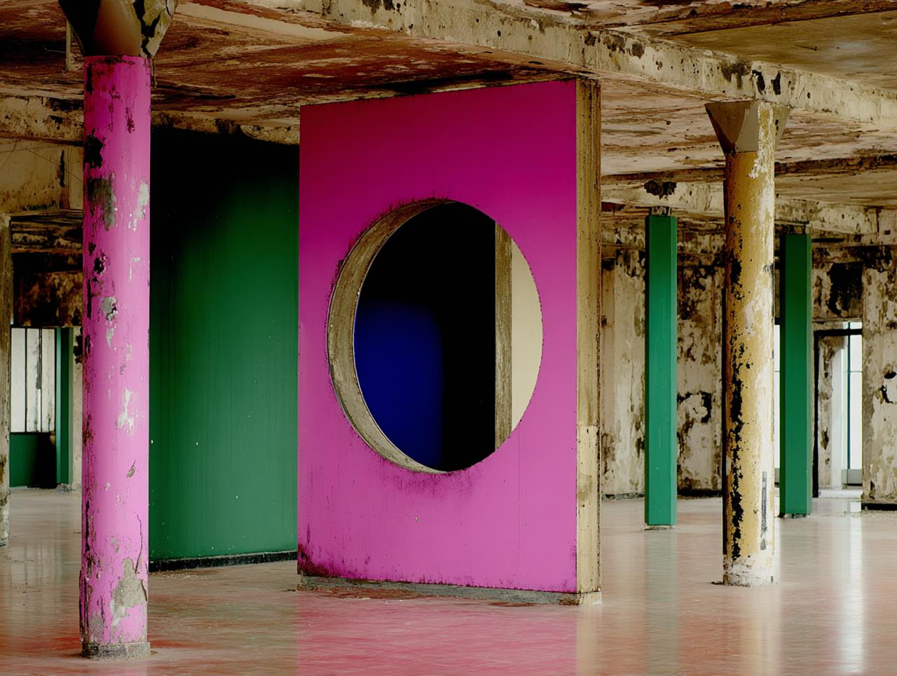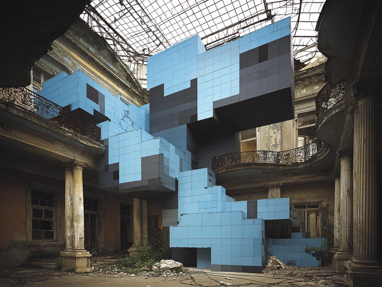 Der französische Wandmaler, Fotograf und Interventionskünstler ist ein Meister darin, die Innenräume verfallender Architektur zu inszenieren. Er sucht dazu überall auf der Welt nach ruinösen Räumlichkeiten, für die er sich spontan begeistern kann.