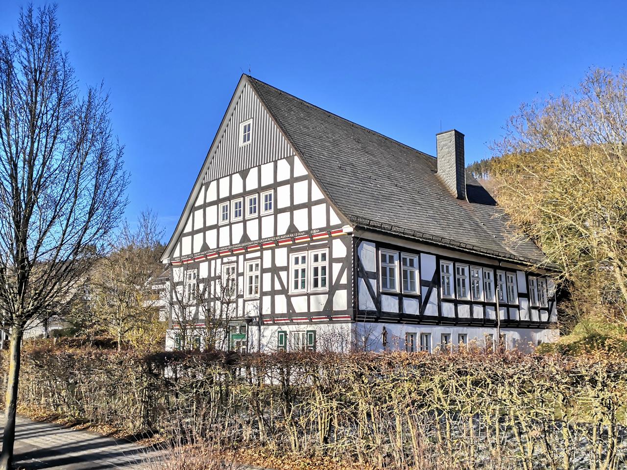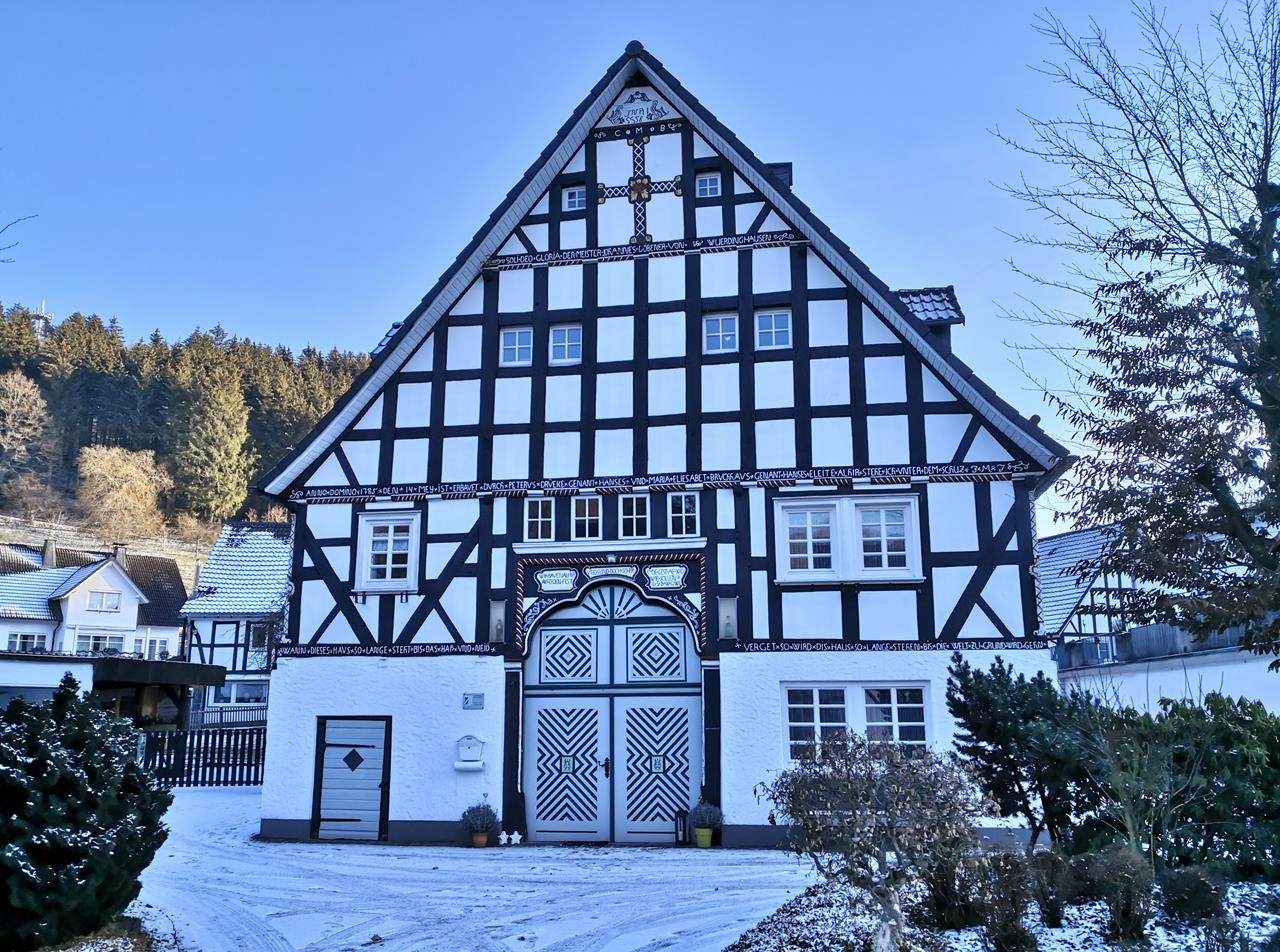 Wunderschönes Sauerländer Fachwerk gab es im historischen Ortskern von Kirchveischede zu sehen, einem Ortsteil von Lennestadt. Rund um die Pfarrkirche St. Servatius stehen elf Fachwerkhäuser unter Denkmalschutz, die zwischen 1784 und 1790 errichtet wurden.