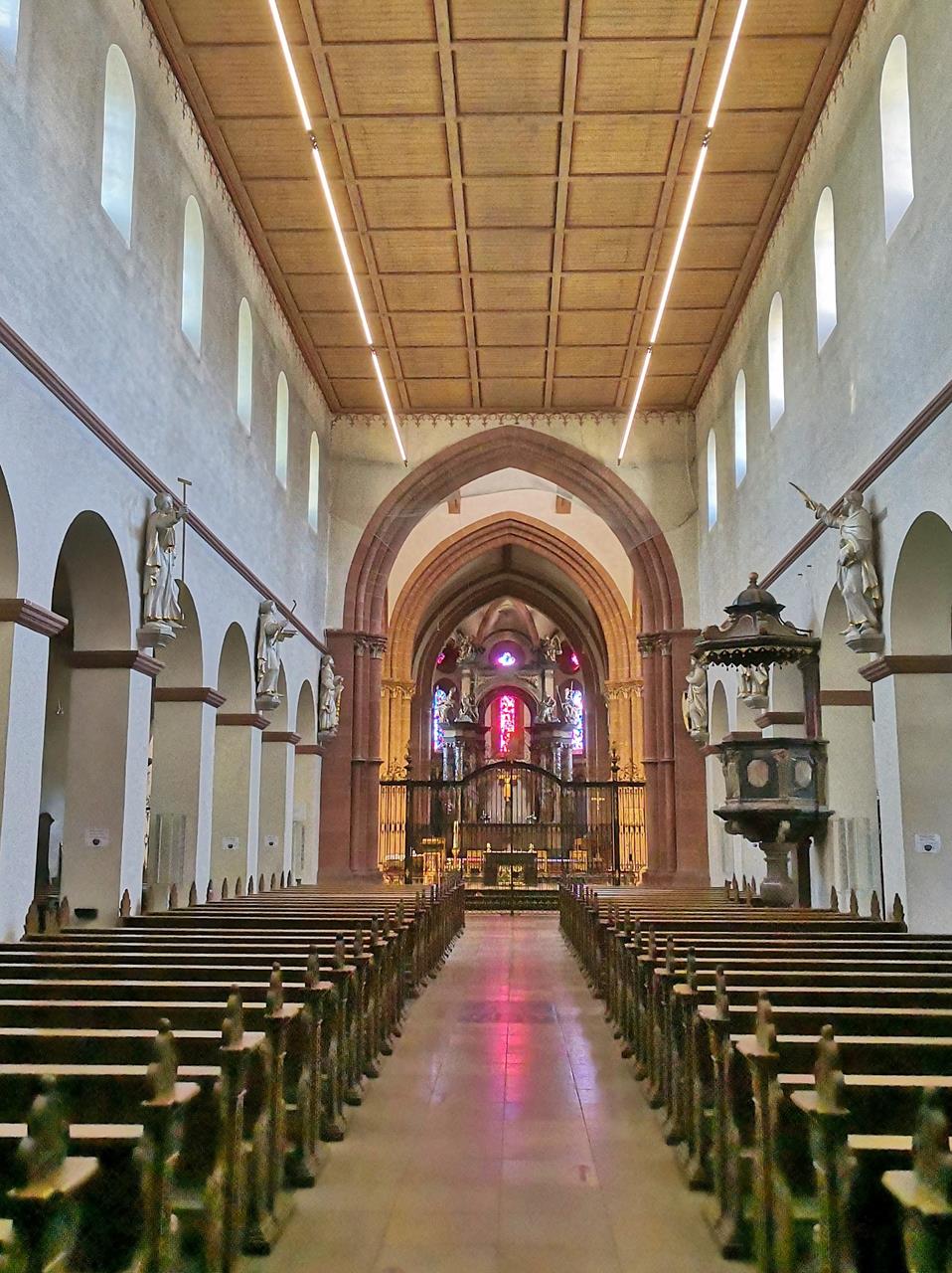 Bevor wir zu unserem Startpunkt im 2 km entfernten Wasserlos zurückkehren, schaue ich mir noch kurz den Innenraum der barocken Pfarrkirche St. Justinus am Marktplatz an. Die Kirche wurde 1758 errichtet und ist mit einem prächtigen barocken Hochaltar ausgestattet.
