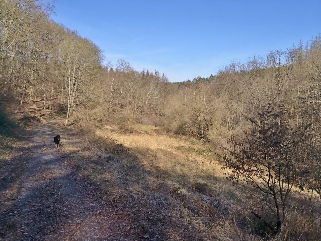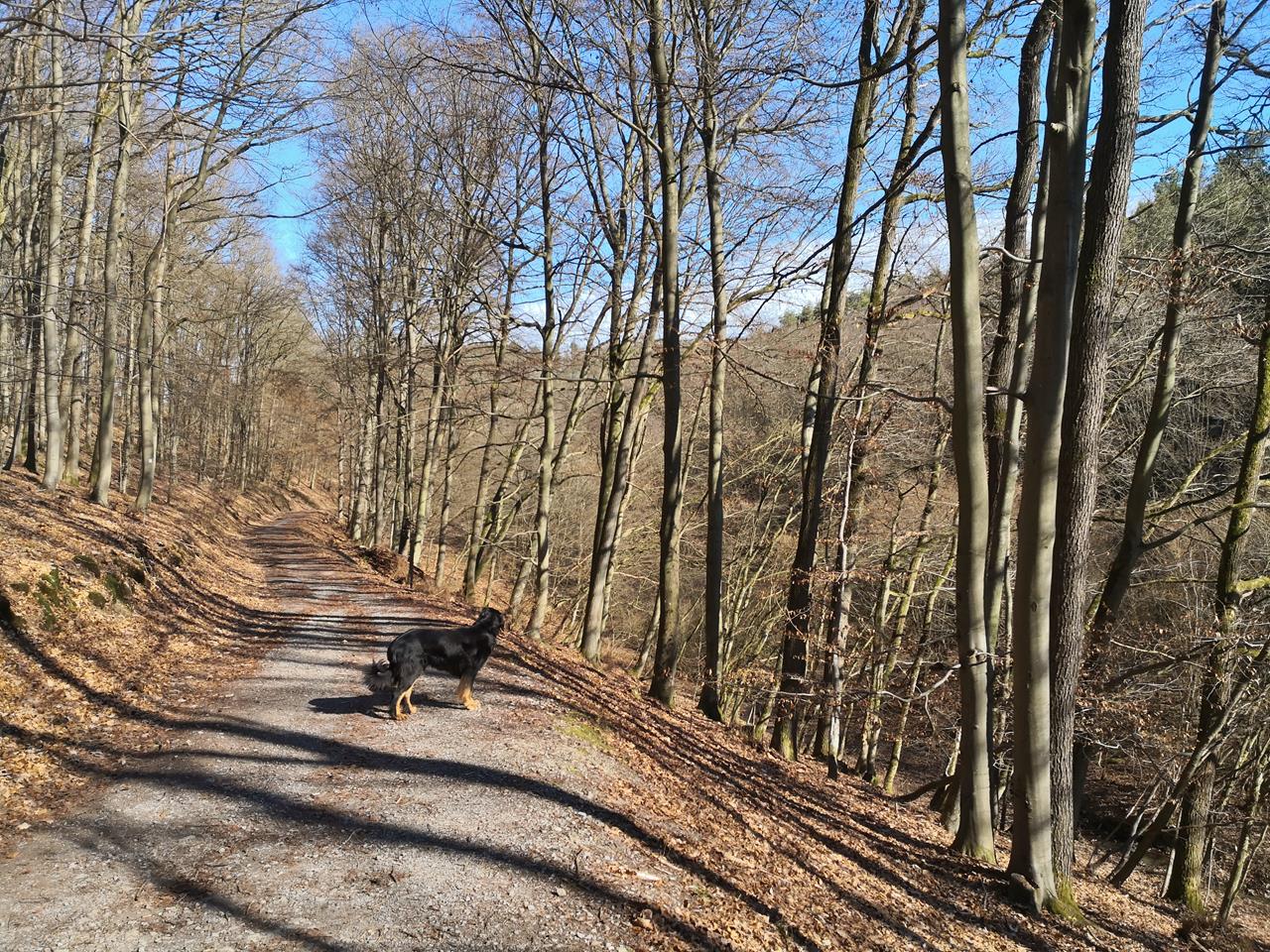 Hoch über Gemünd erheben sich zwei Ortschaften: Im Nordosten das Dorf Wolfgarten und im Westen die Siedlung Hohenfried. Dorthin bin ich heute Morgen mit Doxi auf einer 8 km Tour hinauf gewandert.