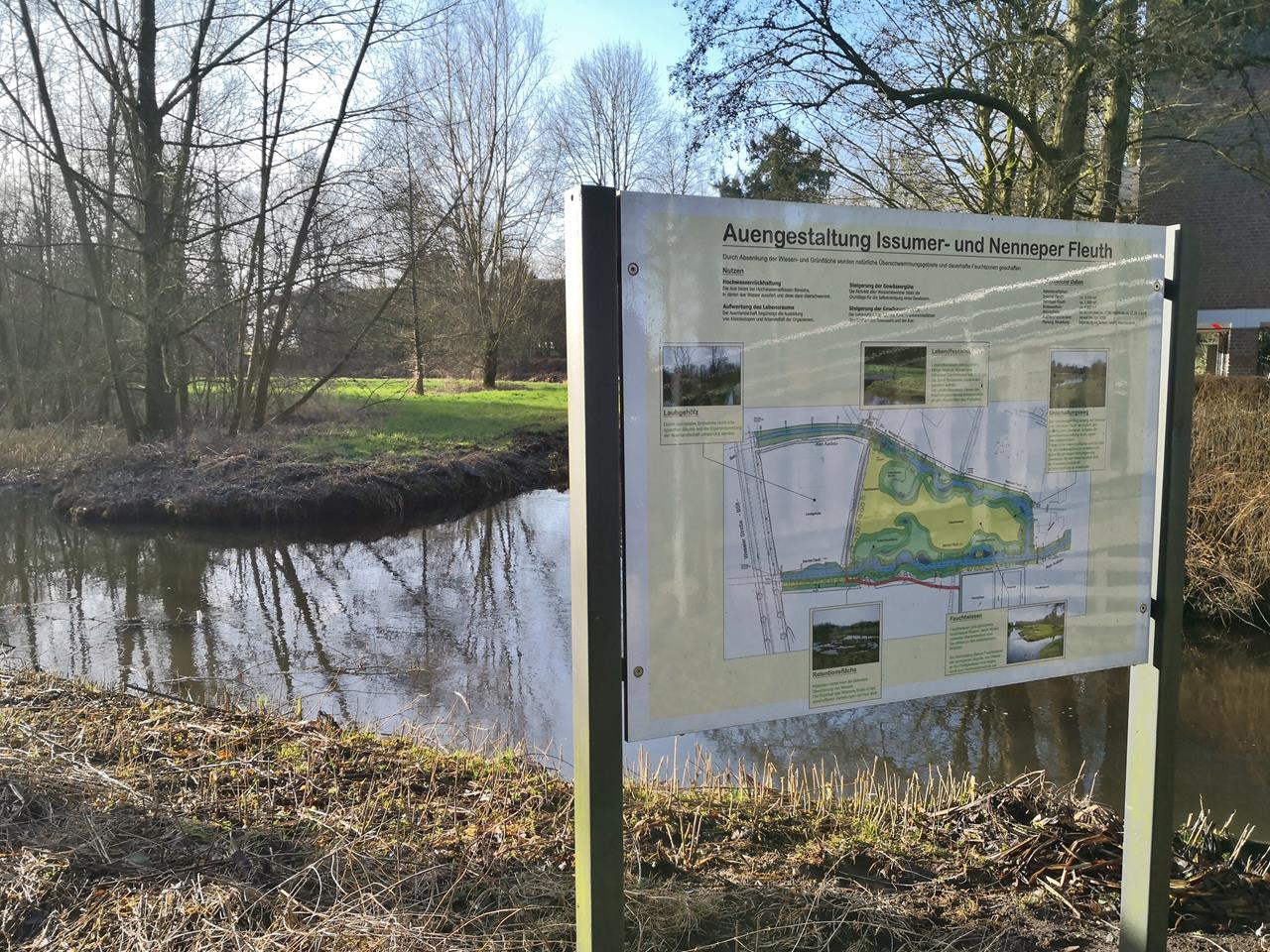 Im Ort mündet die Nenneper Fleuth in die Issumer Fleuth. Nördlich liegt das Naturschutzgebiet Fleuthkuhlen, ein Niedermoorkomplex, den wir auf unserer Wanderung durchqueren.