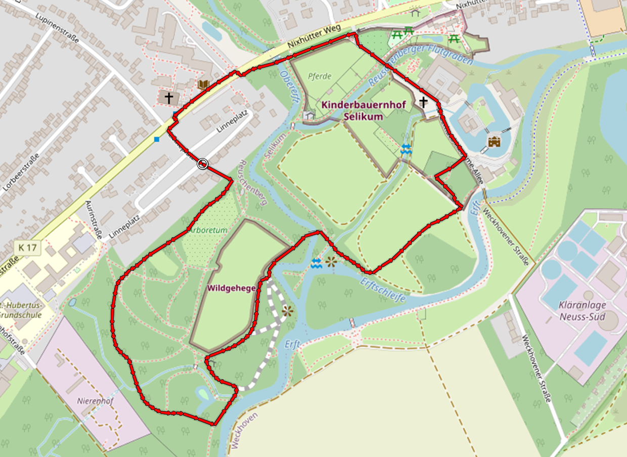 Bald unterqueren wir die Autobahn A4 und drehen kurz dahinter um. Nun geht es komplett auf schmalen Pfaden entlang der Rur und durch frisch gemähte Wiesenflächen zurück zu unserem Startpunkt, den wir nach rund zweieinhalb Stunden und zehn Wanderkilometern wieder erreichen.