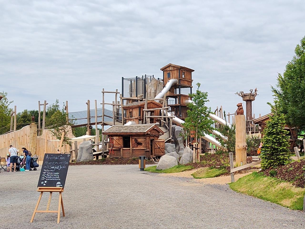 Auf kleine und große Entdecker wartet dort ein 13 Meter hohen Kraxelberg in Murmel’s Dorf, eine Kletteralm, ein Adlerturm oder der Falkenflug in luftigen Höhen. Alles gut gesichert, will ich doch hoffen. Die Vorfreude der Kids am Einlass ist jedenfalls riesig.