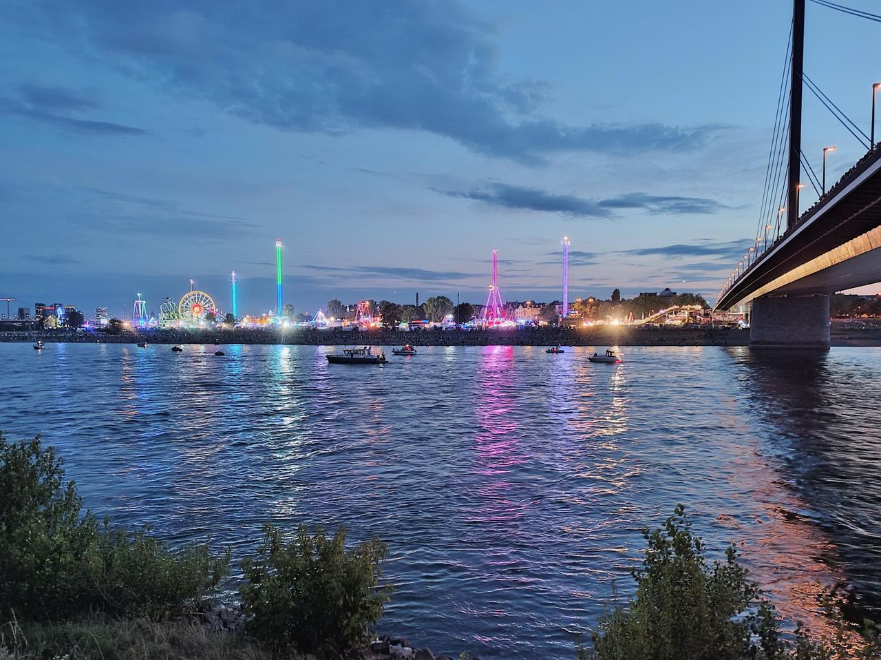 Wahnsinn, was an diesem Abend in Düsseldorf los ist. Ich bin froh, dass ich es dank Motorrad noch rechtzeitig zum Beginn des Schauspiels geschafft habe, vor Ort zu sein.