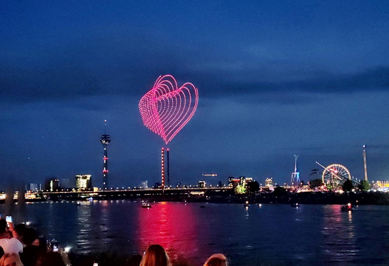 In der Ukraine bringen Drohnen jede Nacht Tod und Verderben. Über Düsseldorf bringen sie an diesem lauen Sommerabend eine neue Qualität des Entertainments. Das lässt mich nach dieser wirklich tollen Show doch etwas nachdenklich zurück. So unterschiedlich kann man Technik einsetzen.