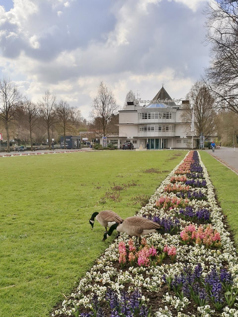 Von dort führt mich die Tour durch den Ortsteil Speldorf zurück zu meinem Startplatz an der Rennbahn. Auf halber Strecke werde ich in einer Grünanlage von einem frei laufenden Rottweiler-Rüden angegriffen. Seine Halter sind nirgendwo zu sehen.