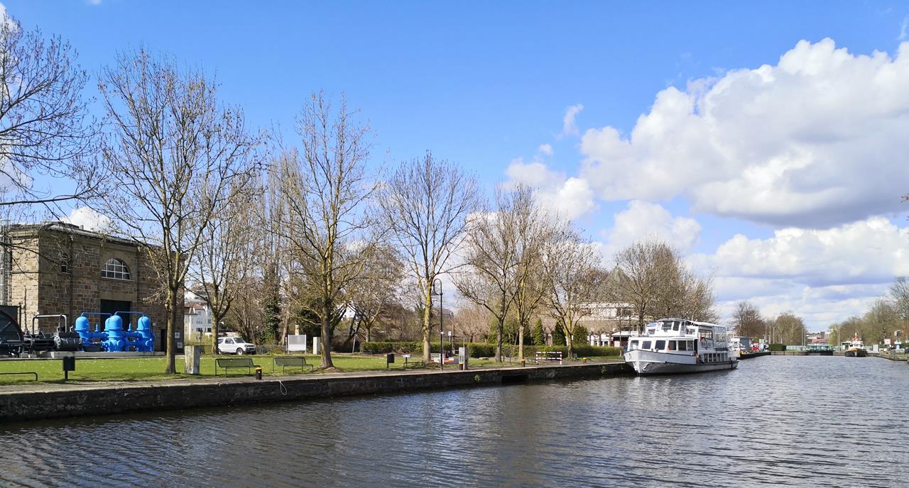 Vom Wasserbahnhof auf der Schleuseninsel laufen die Passagierschiffe der Weißen Flotte aus zu den Fahrten durch das malerische Ruhrtal nach Essen-Kettwig.