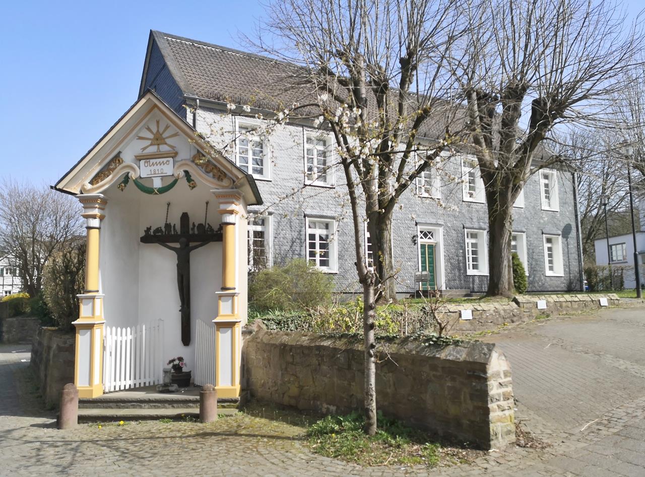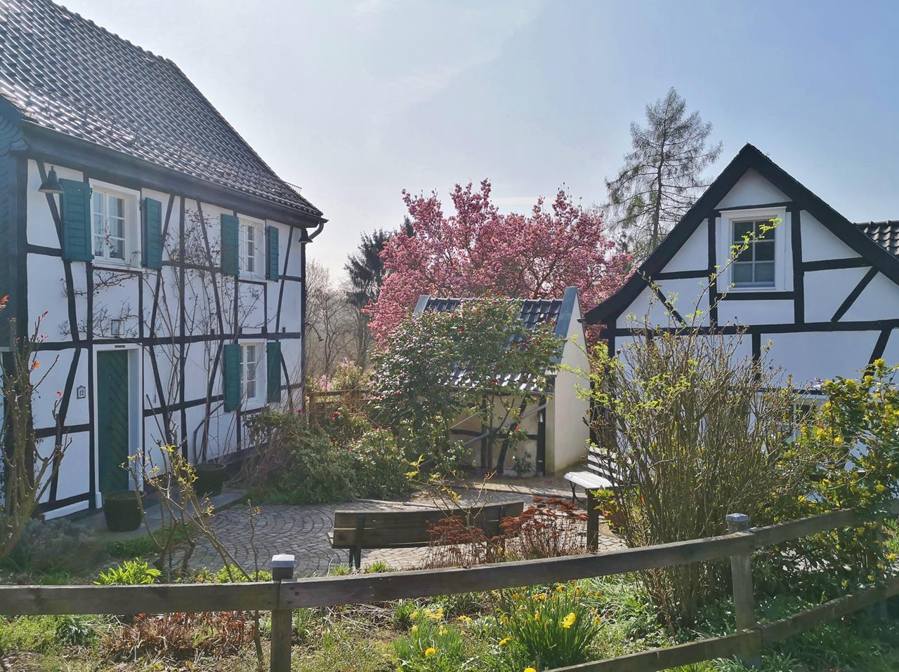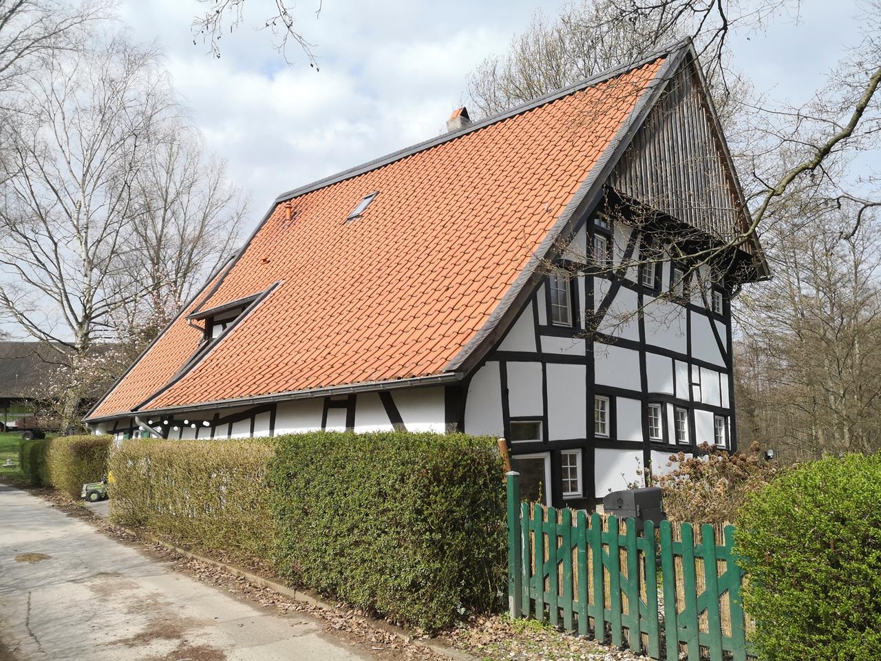 Ich starte in Knittkuhl am äußersten nordöstlichen Zipfel des Düsseldorfer Stadtgebiets – leider ohne Doxi, denn die hat immer noch Schwierigkeiten mit ihrem linken Schultergelenk und musste deshalb zu Hause bleiben.Mit weitem Blick über die Höhen in Richtung Homberg laufe ich zunächst hinunter ins Hasselbachtal, wo ehemalige Bauernhöfe von reichen Städtern zu prächtigen Residenzen und Landhotels umgebaut wurden.