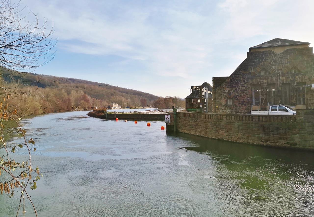 Oberhalb der Harkotsees, der die Ruhr aufstaut, erreichen wir auf der Hälfte der Tour den Harkortturm mit toller Fernsicht in Richtung Herdecke.