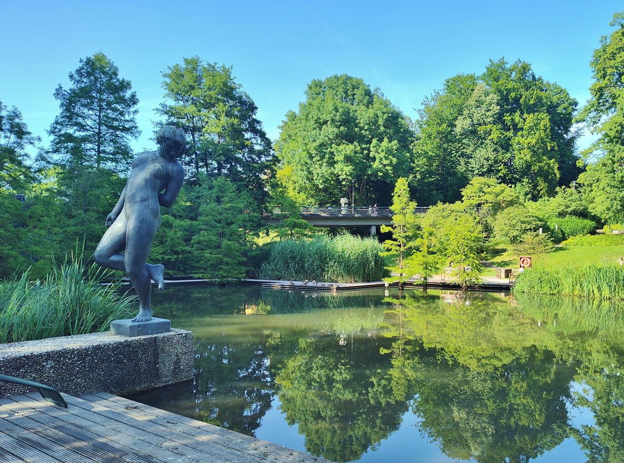 Das 65 Hektar große Gelände südlich der Essener Stadtmitte bietet für jeden etwas: Liegeflächen, Grill- und Spielplätze, lauschige Teiche und Bachläufe, Mustergärten, Volieren, einen Kleintiergarten, eine Park-Eisenbahn, ein Tropenhaus, einen Japanischen Garten, Bonsais und Sukkulenten, Musikveranstaltungen und mehr als 40 Skulpturen, die über das Gelände verteilt sind. Wirklich schön, hier.