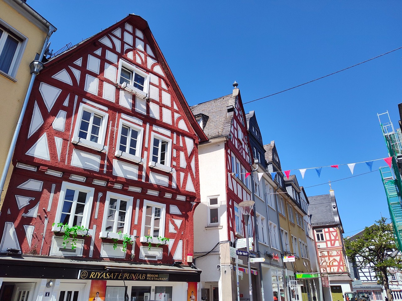 Man ist das warm heute. Ich brauche einen Stellplatz im Schatten, am besten nicht weit weg von der A3, auf der wir heute Richtung Rheinland unterwegs sind. Doch mein erster Versuch in Bad Camberg scheitert. Auf dem kostenlosen Stellplatz im Ortszentrum stehen wir in der prallen Sonne. Das funktioniert nicht.