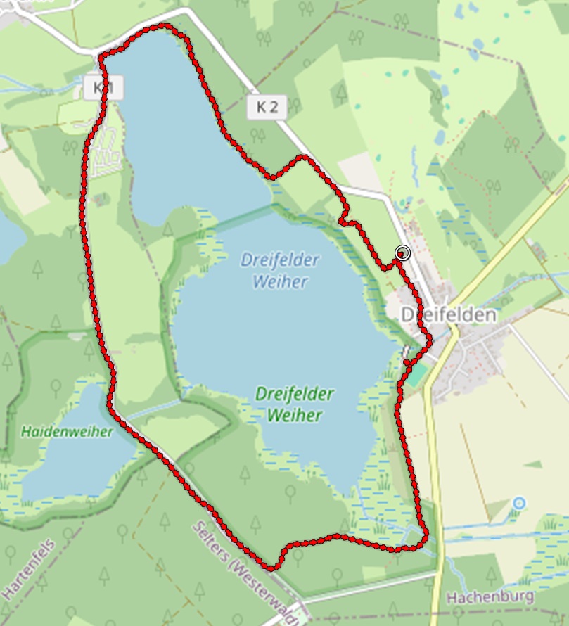 Gelandet bin ich im kleinen Ort Dreifelden auf einem kostenlosen Wanderparkplatz in unmittelbarer Nähe des Dreifelder Weihers. Er ist der größteSee der im Mittelalter künstlich geschaffenen Westerwälder Seenplatte.