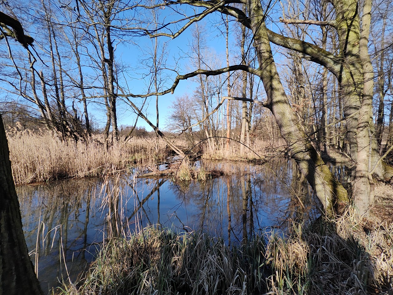 Heute bin ich mit Doxi tief in die wasserdurchzogenen Wälder des Inneren Unterspreewaldes hinein gewandert. Beim kleinen Dörfchen Schlepzig sind wir den urigen Naturlehrpfad „Buchenhain“ gelaufen, der stellenweise schwierig zu gehen ist.