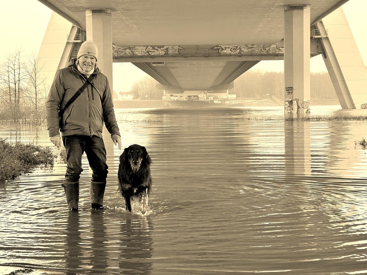 Nach der großen Schneeschmelze im Süden Deutschlands erreichen die Pegel von Rhein und Mosel heute ihren Höhepunkt. Die Überflutungsflächen im Neusser Süden, die flussabwärts die ufernahen Stadtteile von Düsseldorf vor starken Hochwassern schützen sollen, sind komplett vollgelaufen. Das Wasser steht am Fuße des Deiches, doch bis zur Deichkrone sind noch mehr als 2 Meter Platz, also keine Gefahr.