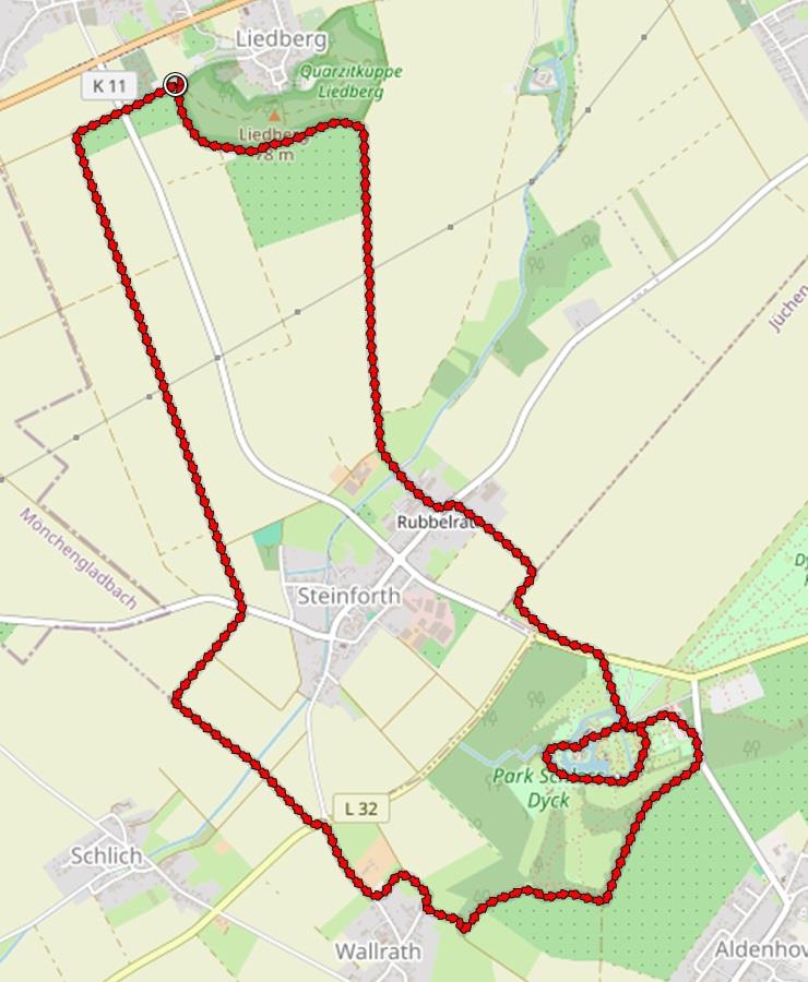 Auf den Feldern zwischen Liedberg und Dyck erwartet mich eiskalter Wind, aber egal, Hauptsache die Sonne scheint. Mit einem Lehrbuch aus meinem Psychologie-Studium auf den Ohren drehe ich mit Doxi eine lange Runde über Wallrath, Schloss Dyck, Steinforth und wieder zurück nach Liedberg.