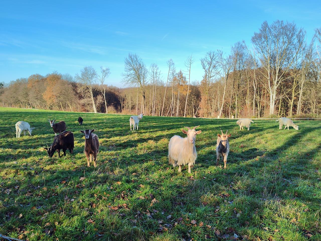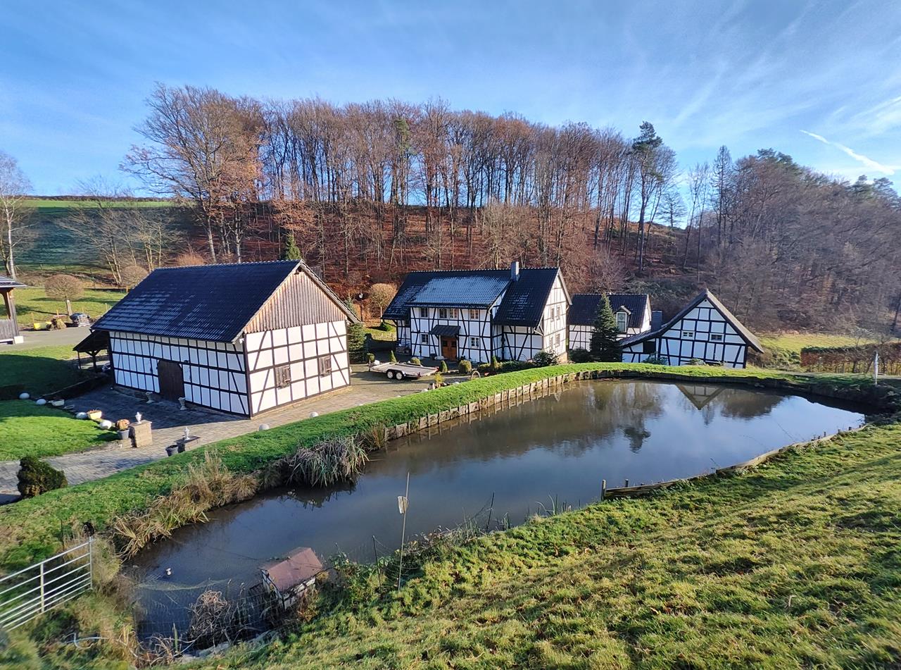 Die hügelige Landschaft in der Umgebung ist geprägt von kleinen Dörfern, in denen sich traditionelle Fachwerkhöfe und moderne Wohnbebauung mischen.