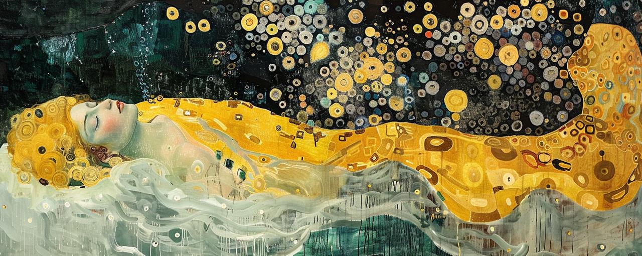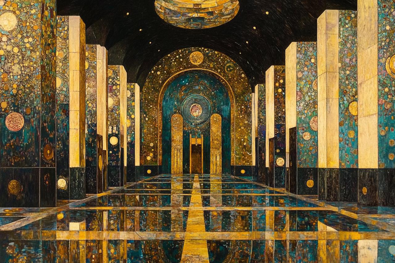 Neu aus der KI auf meiner Festplatte: Frisch imaginierte Bilder im Stile von Gustav Klimt (1862-1918), dem heutigen globalen Superstar des Wiener Jugendstils.