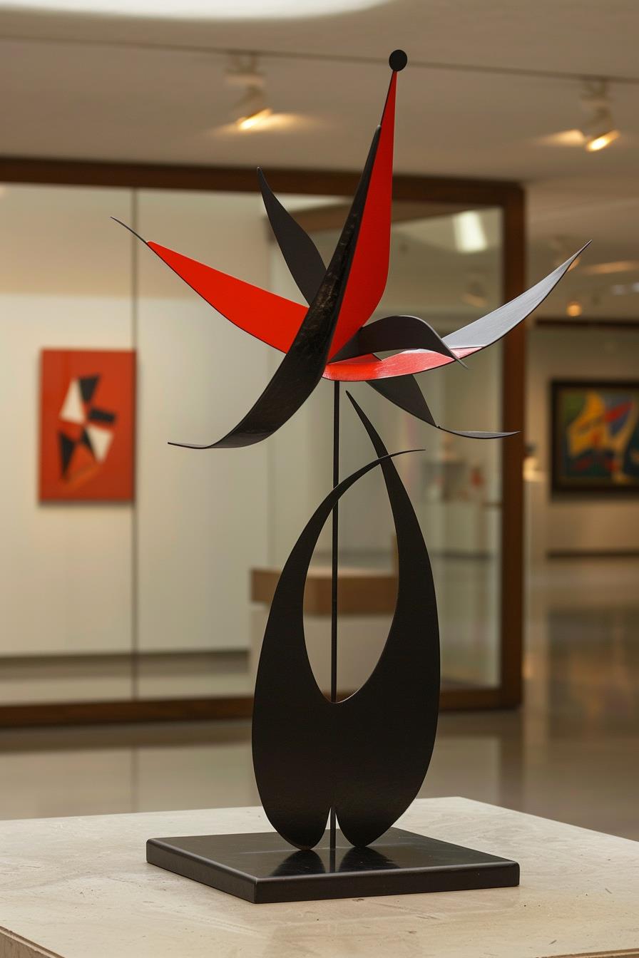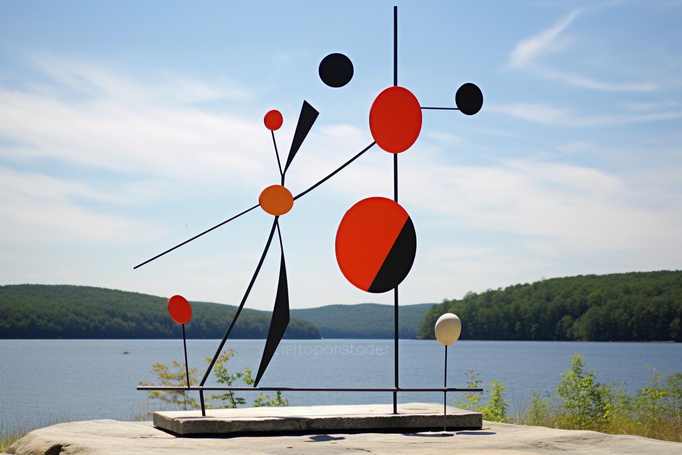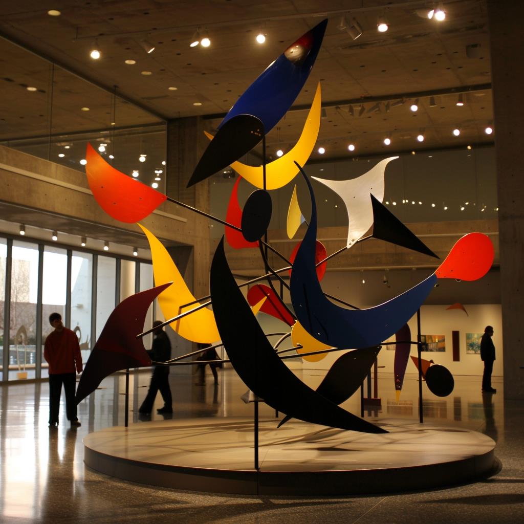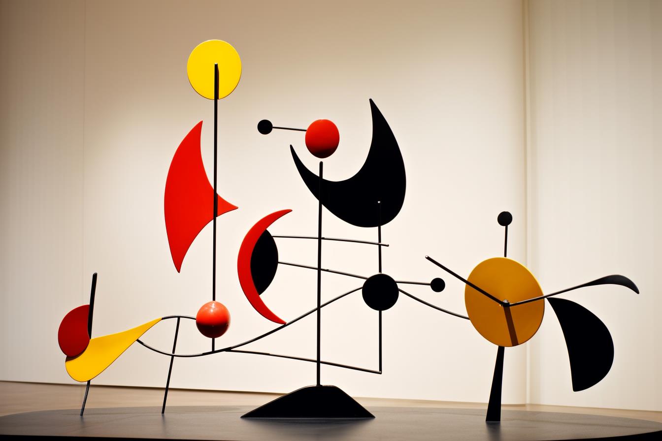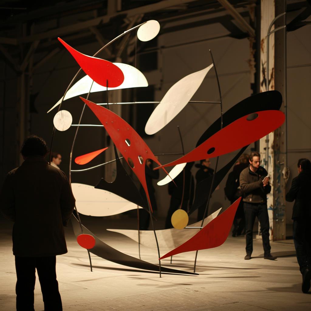 Neu aus der KI auf meiner Festplatte: Frisch imaginierte Skulpturen und Mobiles im Stile von Alexander Calder (1898-1976).