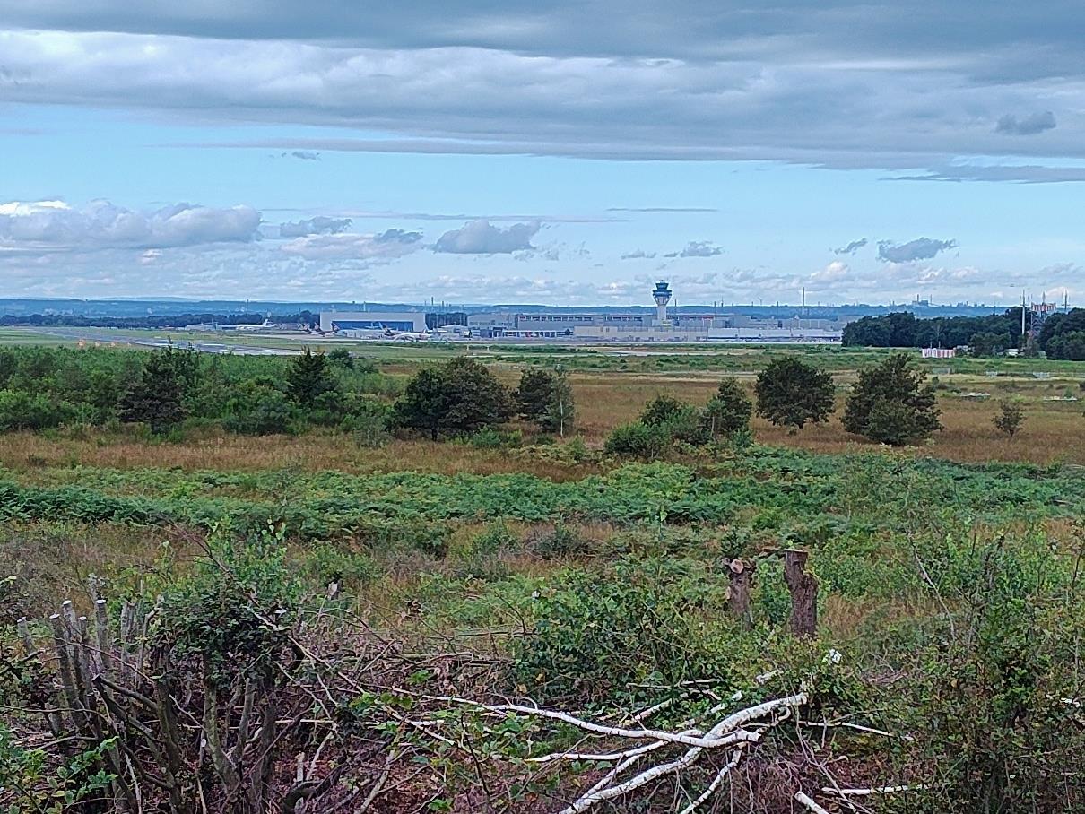 Im letzten Abschnitt haben wir von einer kleinen Anhöhe freie Sicht auf den Flughafen und seine Rollbahnen, doch leider ist genau in diesem Moment kein Flugverkehr.