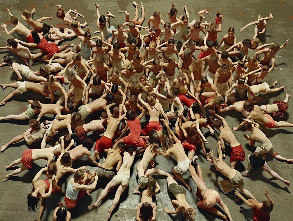 Neu aus der KI auf meiner Festplatte: Frisch imaginierte Menschengruppen inszeniert in der Art von Claudia Rogge (*1965).