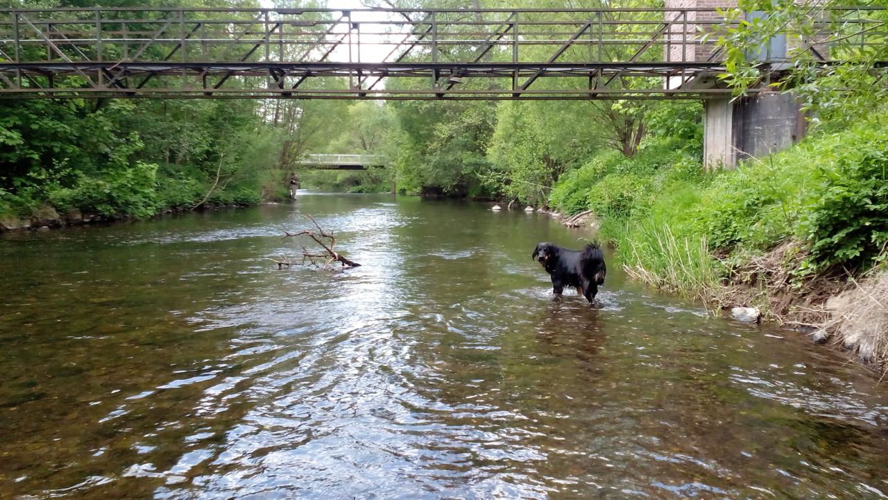Auch Doxi hatte ganz viel Spaß u. a. in der Urft und den vielen Bächen im Wald und natürlich auf ihrer Lieblingsfrisbeewiese (siehe Video).