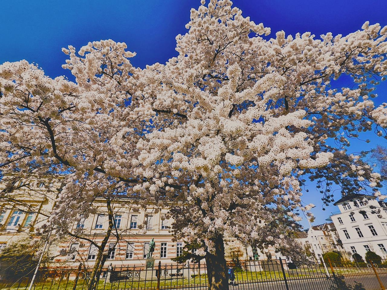 Ich bin nach Bonn gekommen, um die berühmte Kirschblüte in den Straßen der Altstadt zu bewundern. Doch leider bin ich drei oder vier Tage zu früh dran. Anders als bei uns zeigen sich die Zierkirschen hier noch nicht in voller Pracht. Hätte ich vorher vielleicht besser mal ins Internet geschaut.