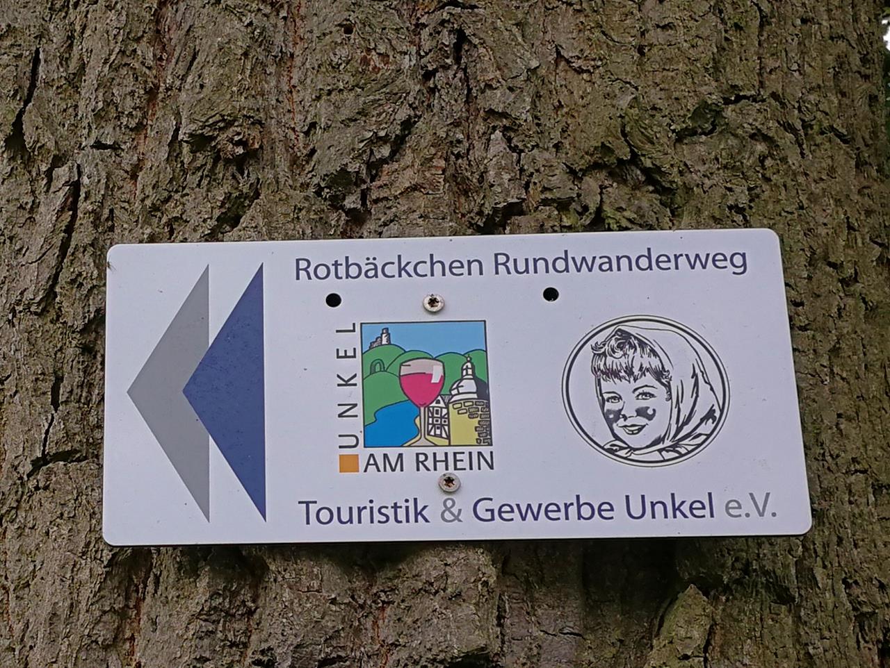 Unsere erste Wanderung an unserem Standort in Unkel führt uns auf einer Länge von 12 Kilometern in einer großen Schleife hinauf zur Erpeler Ley, einem Aussichtsfelsen südlich von Unkel. Wir folgen dabei auf Teilstücken dem Rheinsteig und dem Rotbäckchen-Rundwanderweg, der um Unkel führt.