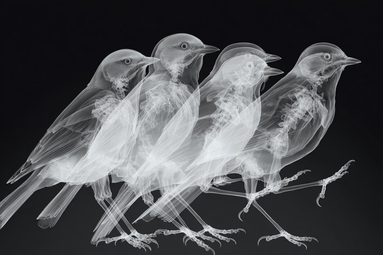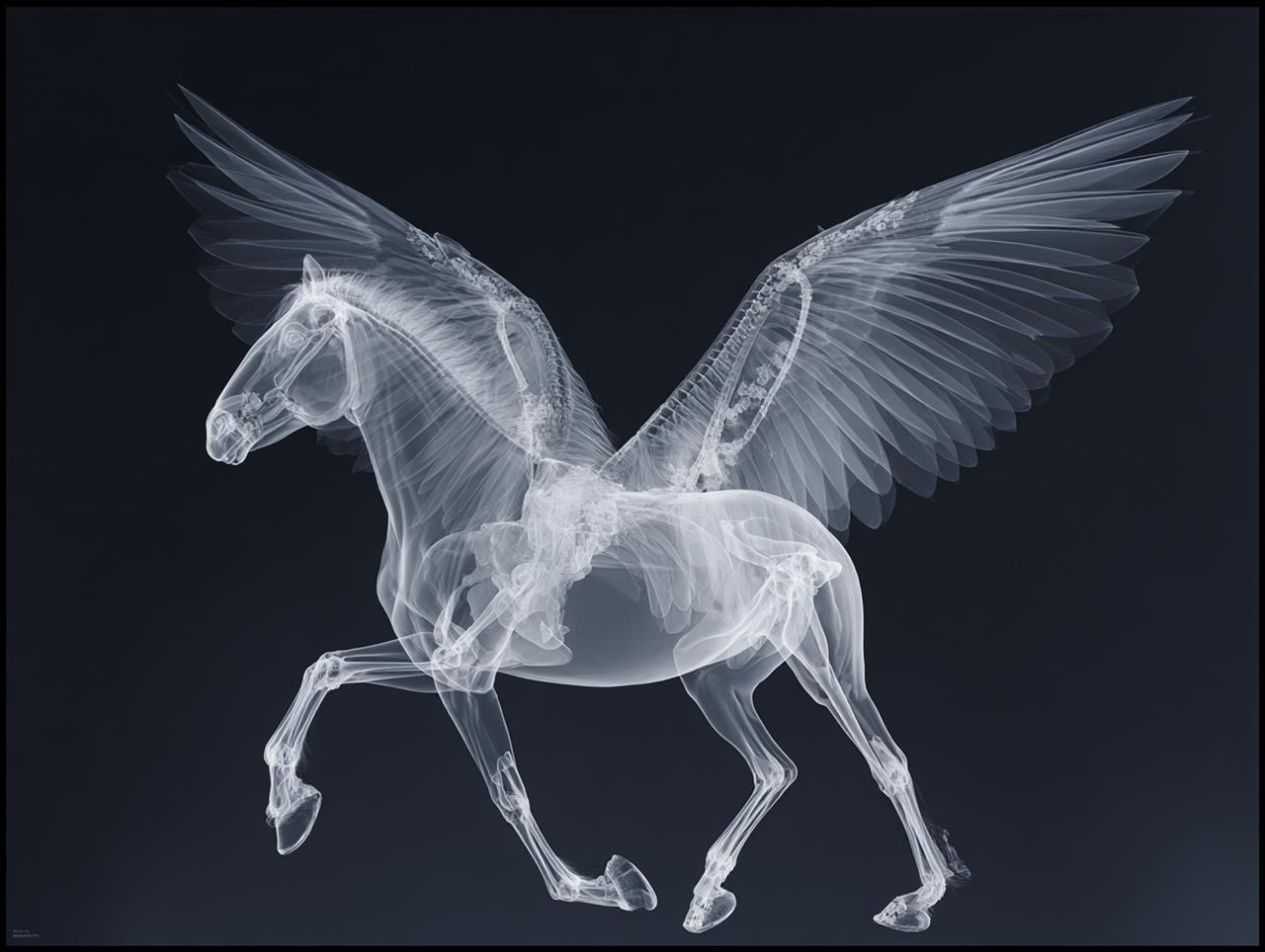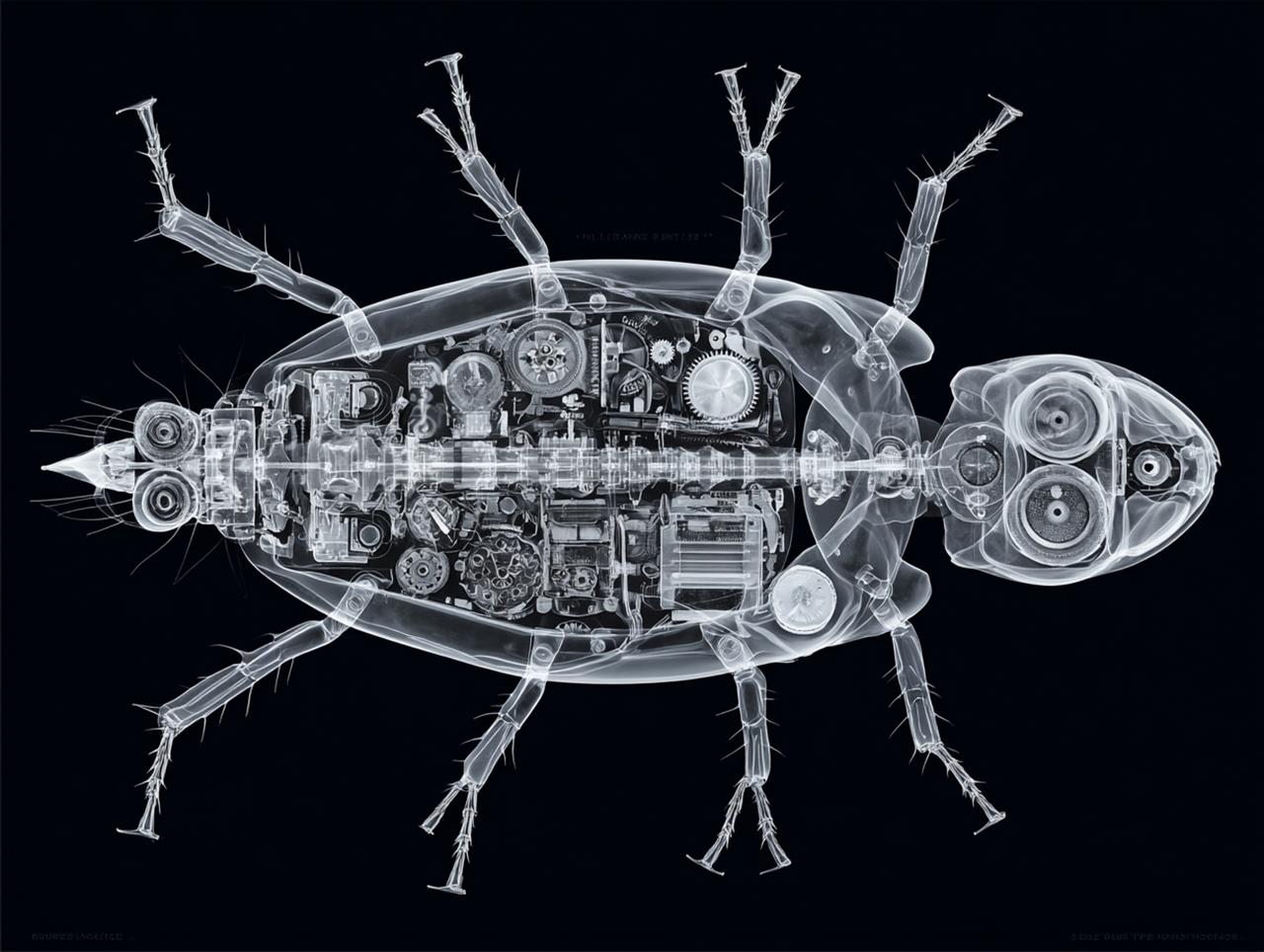 Neu aus der KI auf meiner Festplatte: Frisch imaginierte Kunstwerke im Stile von Nick Veasey (*1962), einem britischen Fotografen, der vor allem für seine röntgenartigen Bilder bekannt geworden ist.
