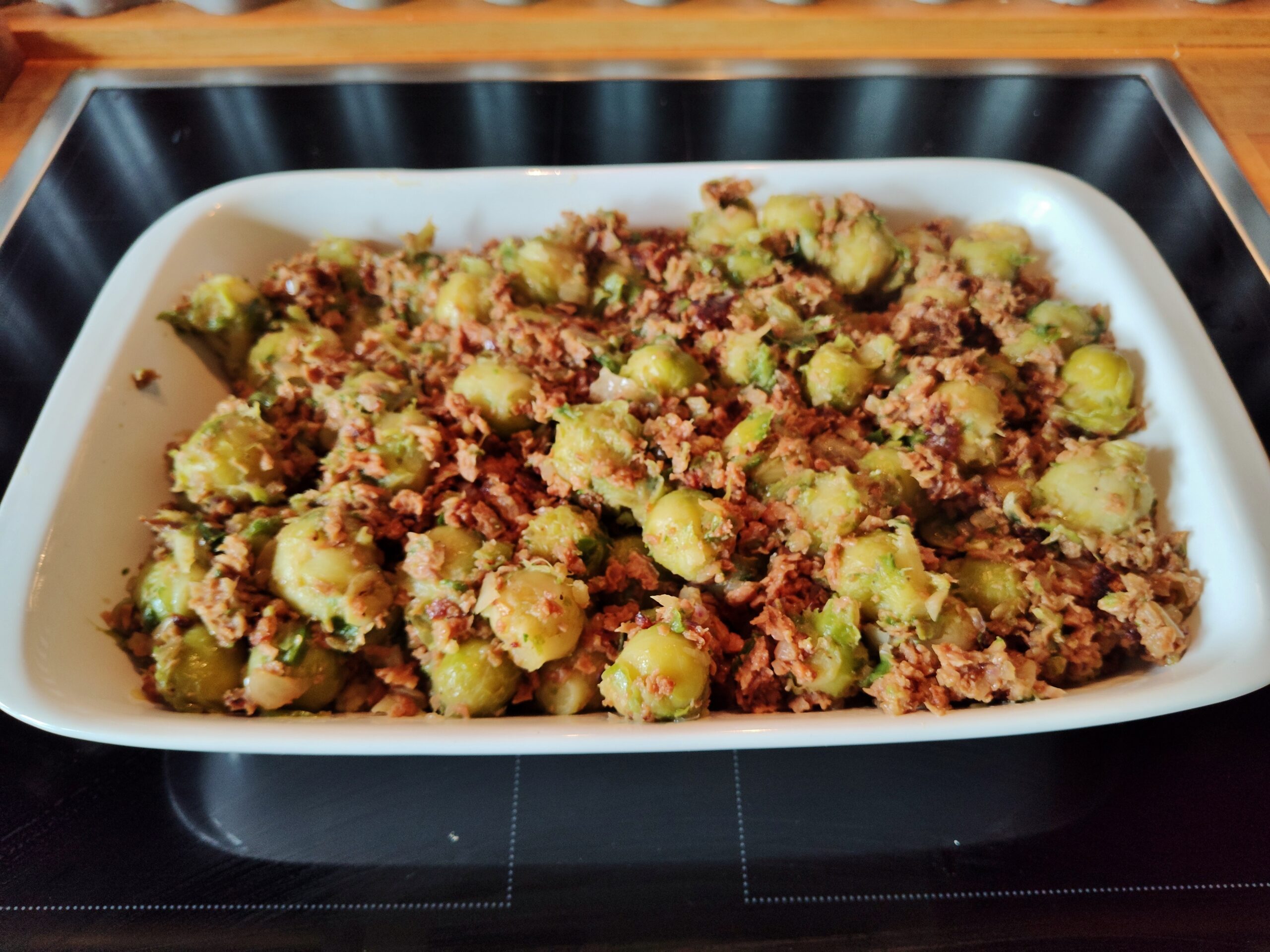 Heute habe ich mir eine spannende Variation zum Thema Rosenkohlauflauf zubereitet. Denn bei diesem Gericht kommt der gekochte und mit angebratenen Zwiebeln und veganem Hack vermengte Rosenkohl auf einem Bett aus gekochter Hirse zu liegen.