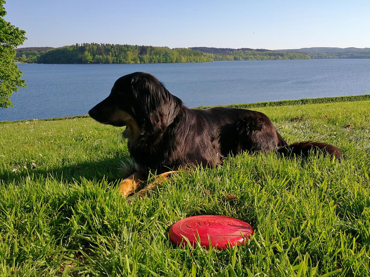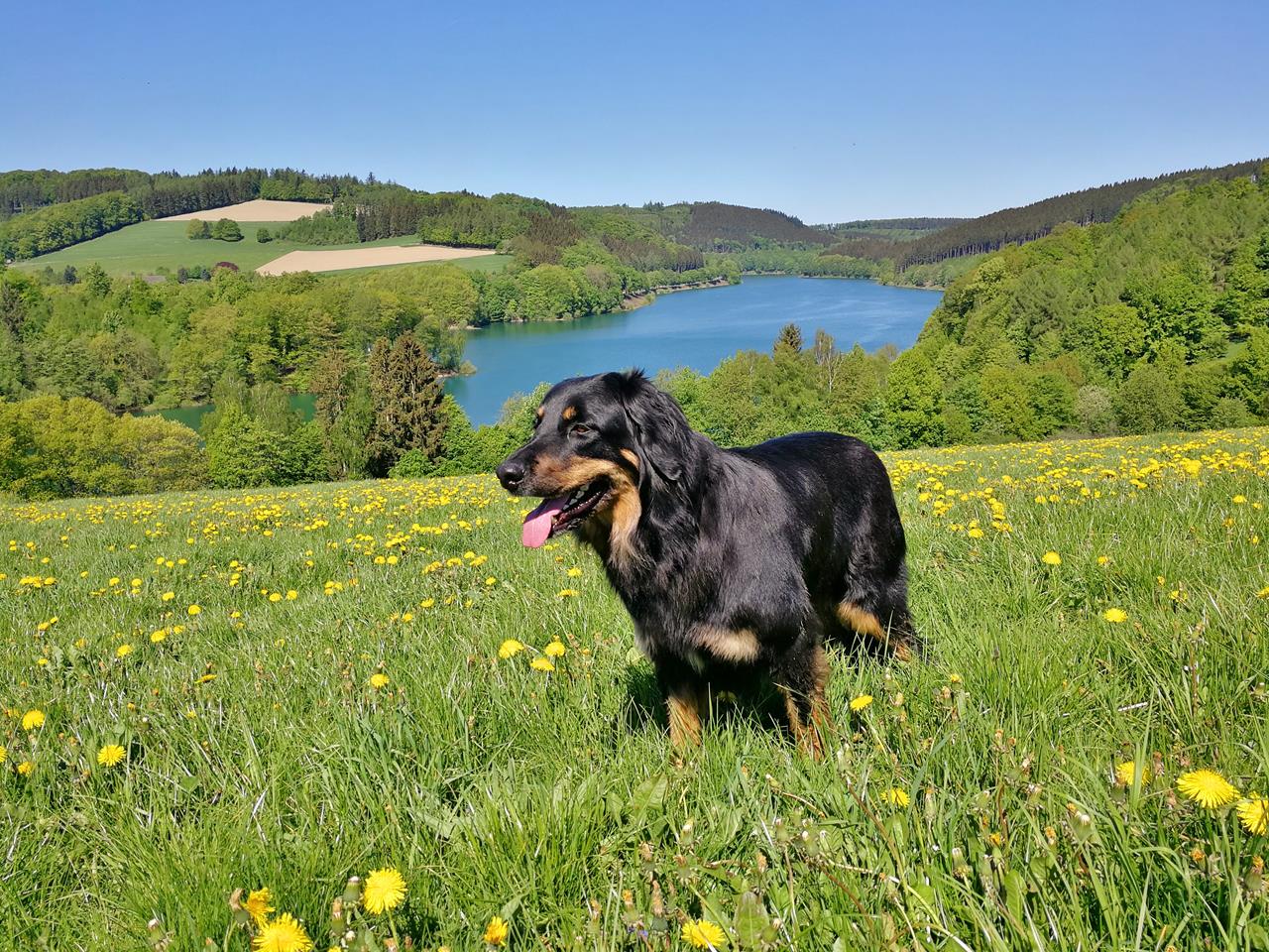 Doxi auf den Wiesen oberhalb des Hennesees