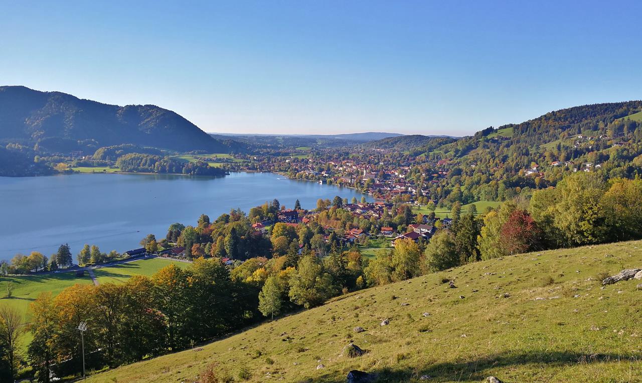 Blick hinunter auf den Ort Schliersee und den gleichnamigen See