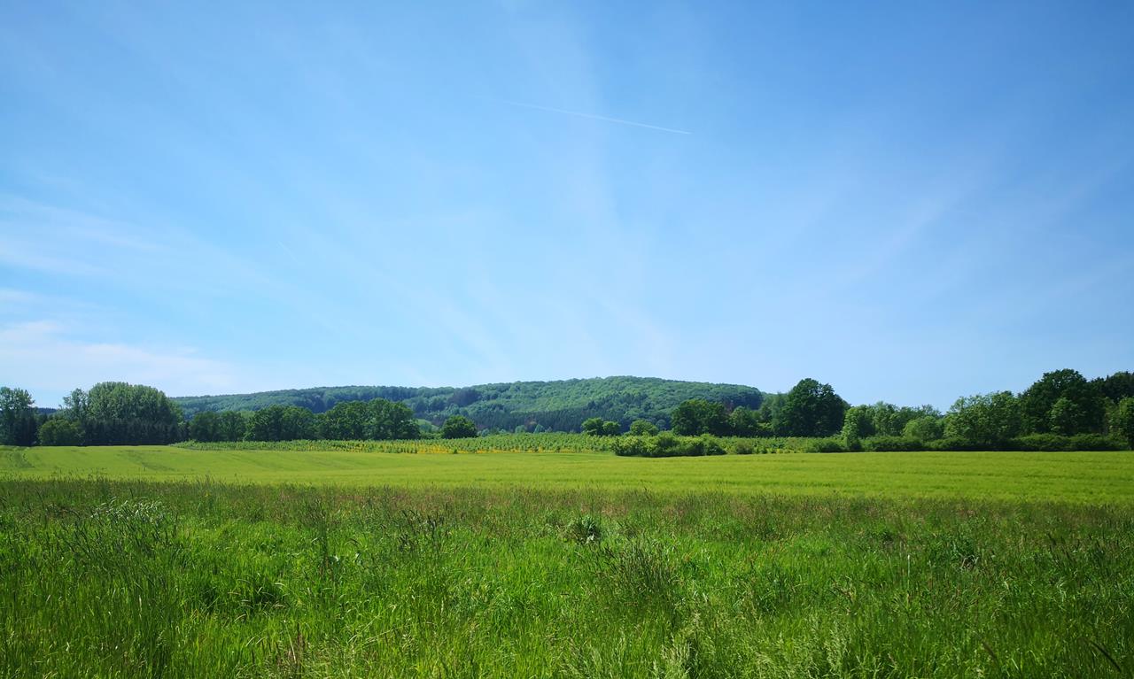 Von Wäldern, Wiesen und Hügeln geprägt, die Landschaft östlich von Bad-Meinberg