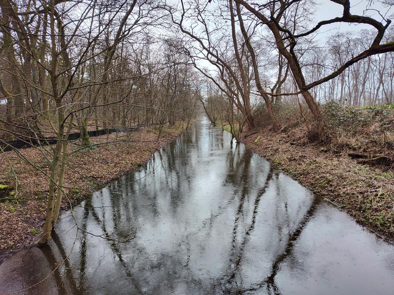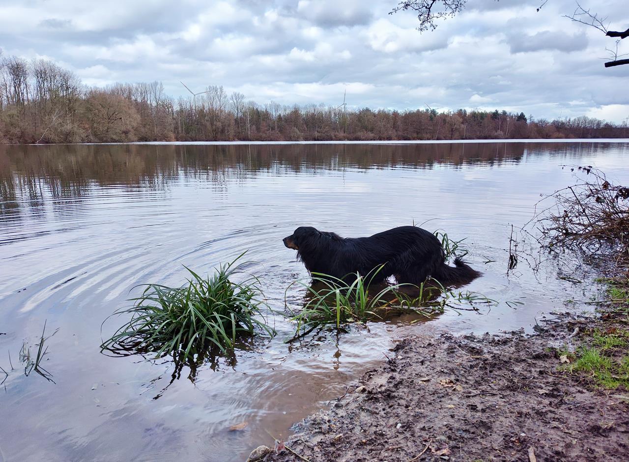 Es geht rund um den Büttger Wald und dem angrenzenden Pferdebroich entlang mehrerer Baggerseen, in denen Sand und Kies aus dem Ur-Rhein gefördert werden.Nach dem nassen Herbst und Winter steht das Grundwasser hoch. Das sieht man sowohl in den Baggerseen als auch in den angrenzenden Waldflächen, die teilweise leicht unter Wasser stehen.