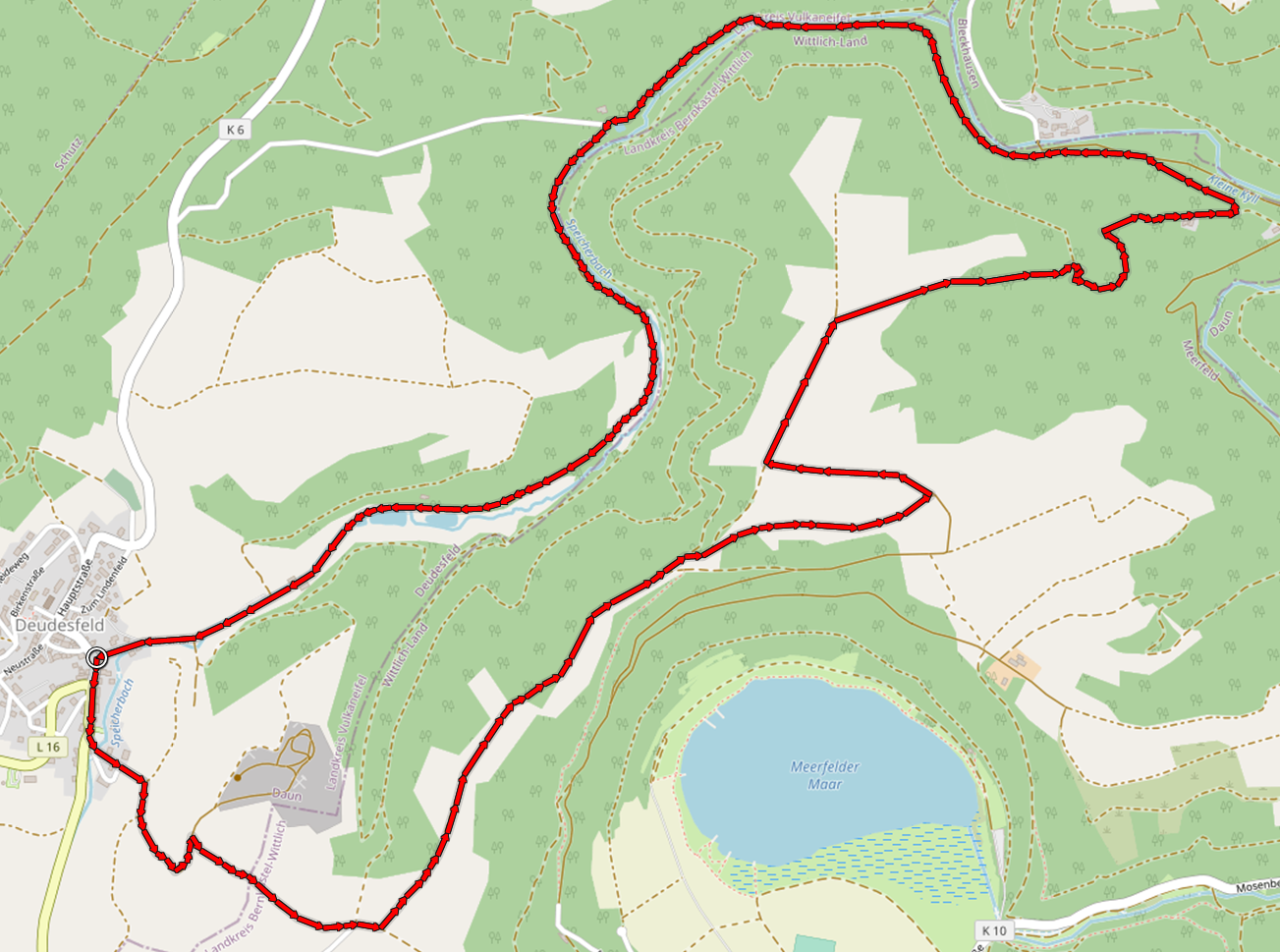 Von Gillenfeld bin ich über Manderscheid und Meerfeld nach Deudesfeld weitergefahren. Es sind nur 20 km, aber ein ständiges Auf und Ab über steile Höhen, enge Täler und schmale Sträßchen.