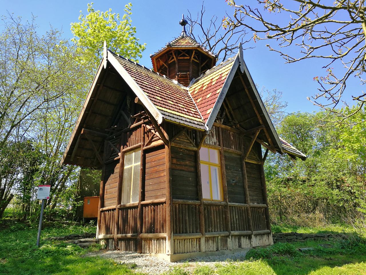 Nun beginnt unser langer Abstieg hinunter ins Tal des Lorsbachs zum gleichnamigen Ort. Von dort geht es wieder hinauf zur Hochfläche von Langenhain, wo wir schon aus der Ferne einen merkwürdigen kugelartigen Bau ausmachen können. Dieser entpuppt sich bei der Annäherung als architektonisches Schmuckstück. Es ist der einzige Tempel der Religionsgemeinschaft der Bahai in Europa.