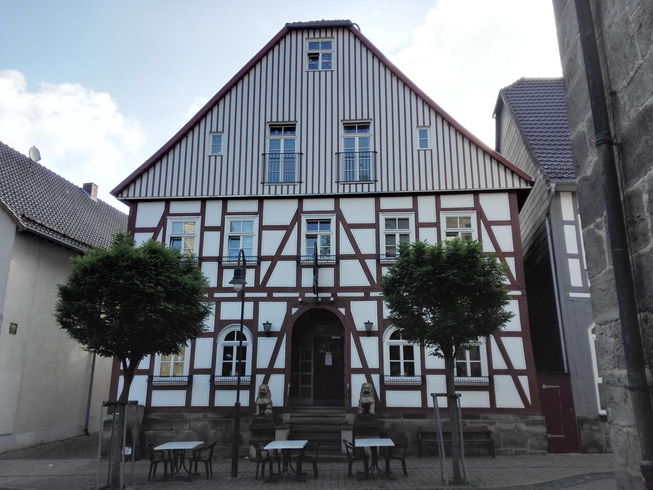 Von Bad Arolsen sind wir in das zehn Kilometer östlich gelegene Volkmarsen gefahren, wo wir an der Nordhessenhalle einen schönen kostenlosen Womo-Stellplatz direkt an der Twiste gefunden haben. Von dort brechen wir am Morgen zur Wandertour Nummer 2 aus dem Rother Wanderführer „Kurhessen“ auf.