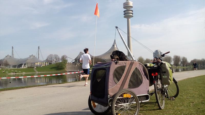 Dann Richtung Süden an der jetzt leeren Theresienwiese und der Bavaria vorbei und wieder Richtung Thalkirchen zur Isar und zurück zu unserem Campingplatz. Rund 50 Kilometer insgesamt.