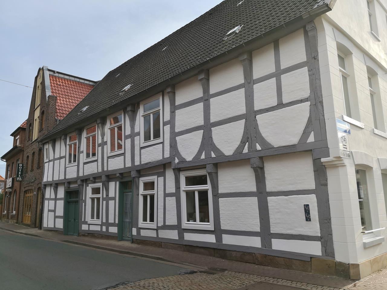 Nach dem Besuch des Schlosses laufe ich mit Doxi noch ein wenig durch die historische Altstadt rund um das Rathaus und die ev. Pfarrkirche St. Georg an der Große Straße. Dann geht es aber schon weiter, denn ich möchte heute noch die Stadt Rheine besuchen.