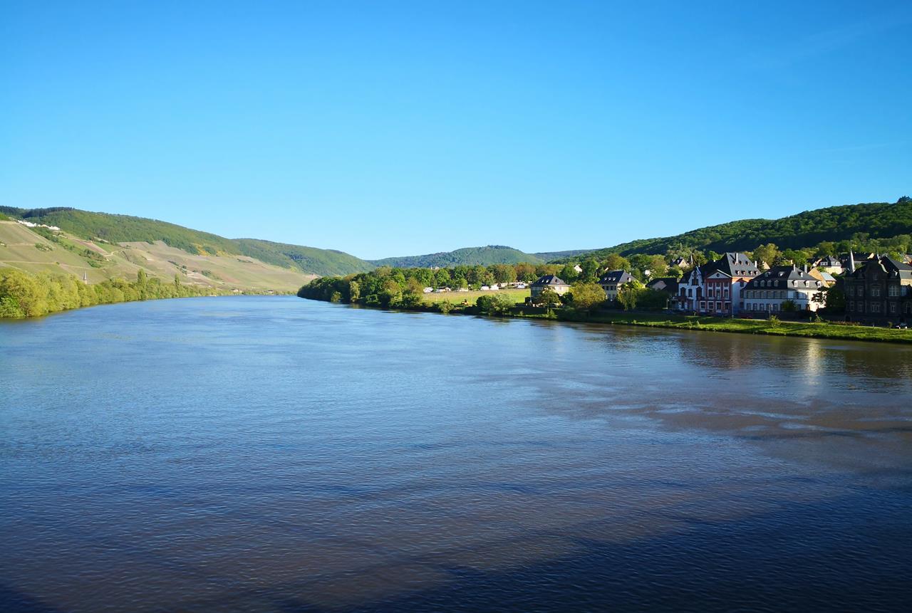 Unsere Wandertour sieht eigentlich den Aufstieg auf die bewaldeten Moselhänge hinter Wehlen vor, aber nachdem wir heute schon fast neun Stunden gelaufen sind, reicht es mir langsam. Spontan beschließe ich, stattdessen an der Mosel entlang nach Zeltingen-Rachtig zurückzulaufen. So sparen wir uns einige Höhenmeter und kommen außerdem an der großen Moselschleuse vorbei, die sehr modern wirkt, so als sei sie erst vor wenigen Jahren erneuert worden.