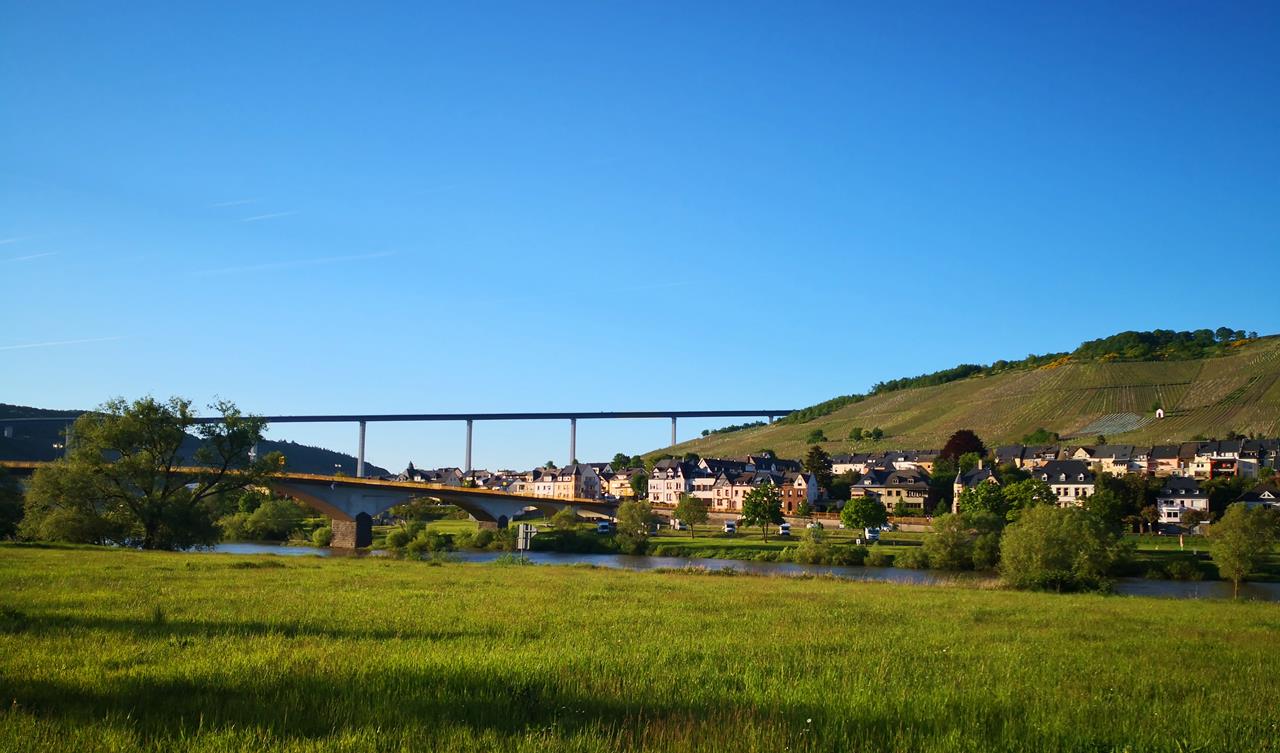 Wir laufen weiter in Richtung Bernkastel-Kues, drehen aber an der kleinen Siedlung Graacher Schäferei in den Weinbergen um und laufen hinunter in den urigen Ort Graach. Dahinter geht es auf halber Strecke in Richtung Zeltingen-Rachting auf der Moselbrücke hinüber nach Wehlen, das bereits zu Bernkastel-Kues gehört.